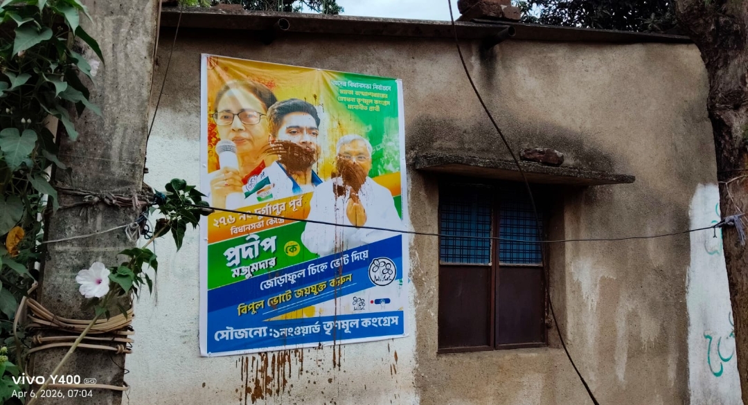 তৃণমূল প্রার্থীর পোস্টারে কাদা লাগানোর অভিযোগ বিরোধীদের বিরুদ্ধে